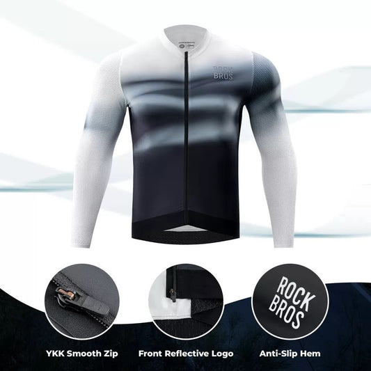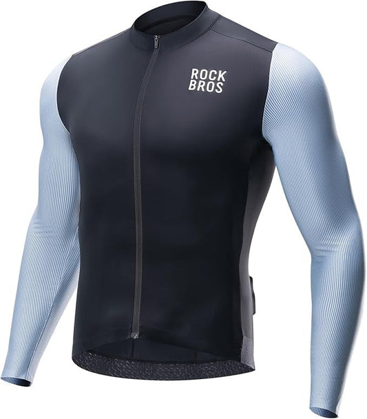 Camisa de ciclismo masculina de manga comprida ROCKBROS Camisa de ciclismo respirável de secagem rápida com zĂper e 3 bolsos Camiseta para homens de bicicleta de estrada MTB tamanho europeu