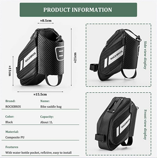ROCKBROS Saco de selim de bicicleta C32 com porta-garrafa preto aprox. 1L