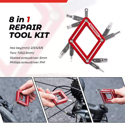 Ferramenta multifuncional de bicicleta ROCKBROS 8 em 1 para reparo de ferramentas dobráveis