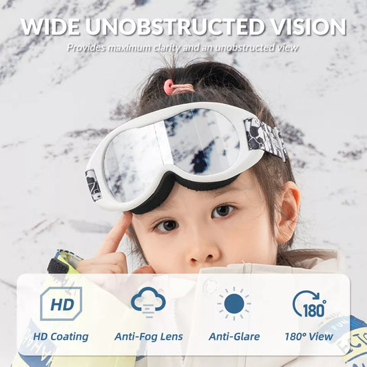 Óculos de esqui Qunature, óculos de snowboard para crianças e adultos que usam óculos antiembaçantes