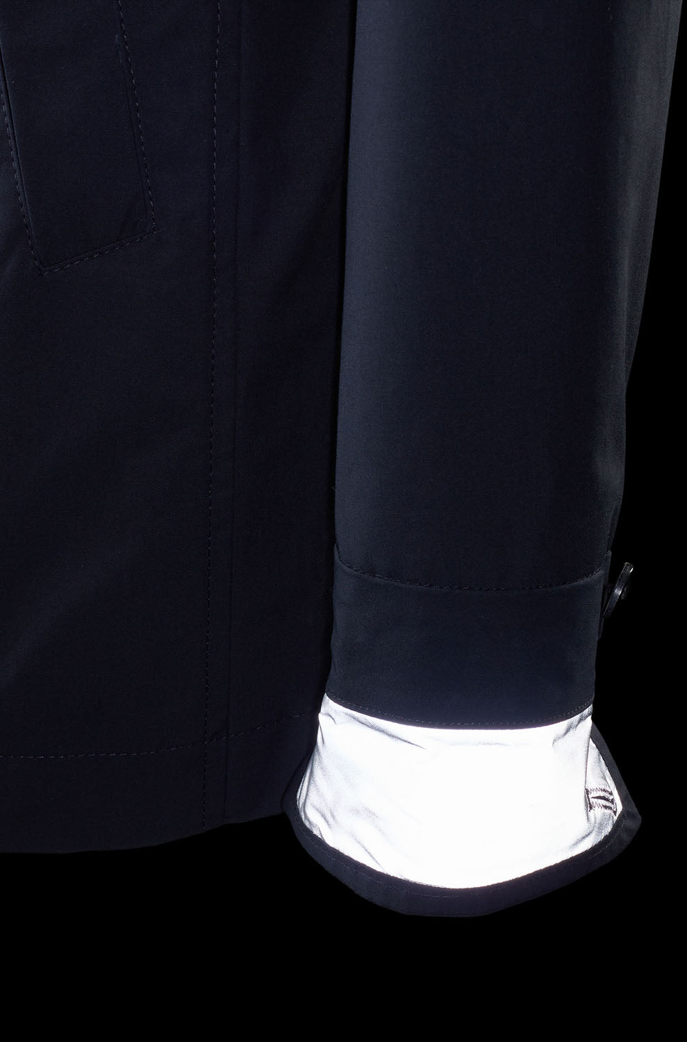 Quem olhar para Franziska por trás reconhecerá diferenças importantes e características típicas do nosso estilo: pregas para movimento em as costas e duas fendas laterais para máxima liberdade de braço no selim da bicicleta, uma alça traseira ajustável com tiras refletoras. Os punhos nas extremidades das mangas também são forrados com material refletivo na parte interna. Isso só se torna aparente quando o punho é dobrado - simplesmente Urban Utility.