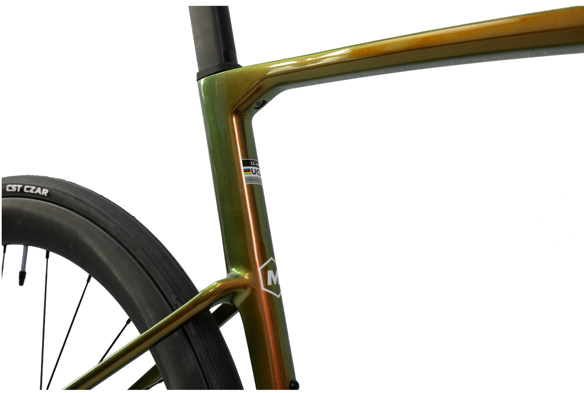 Quadro e garfo totalmente em carbono: construção ultraleve em carbono Toray T800.
